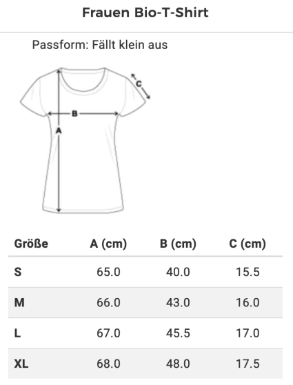 Zögere nicht länger und sichere dir jetzt dieses hochwertige Frauen Bio-T-Shirt! Trage deinen Teil zum Umweltschutz bei und genieße